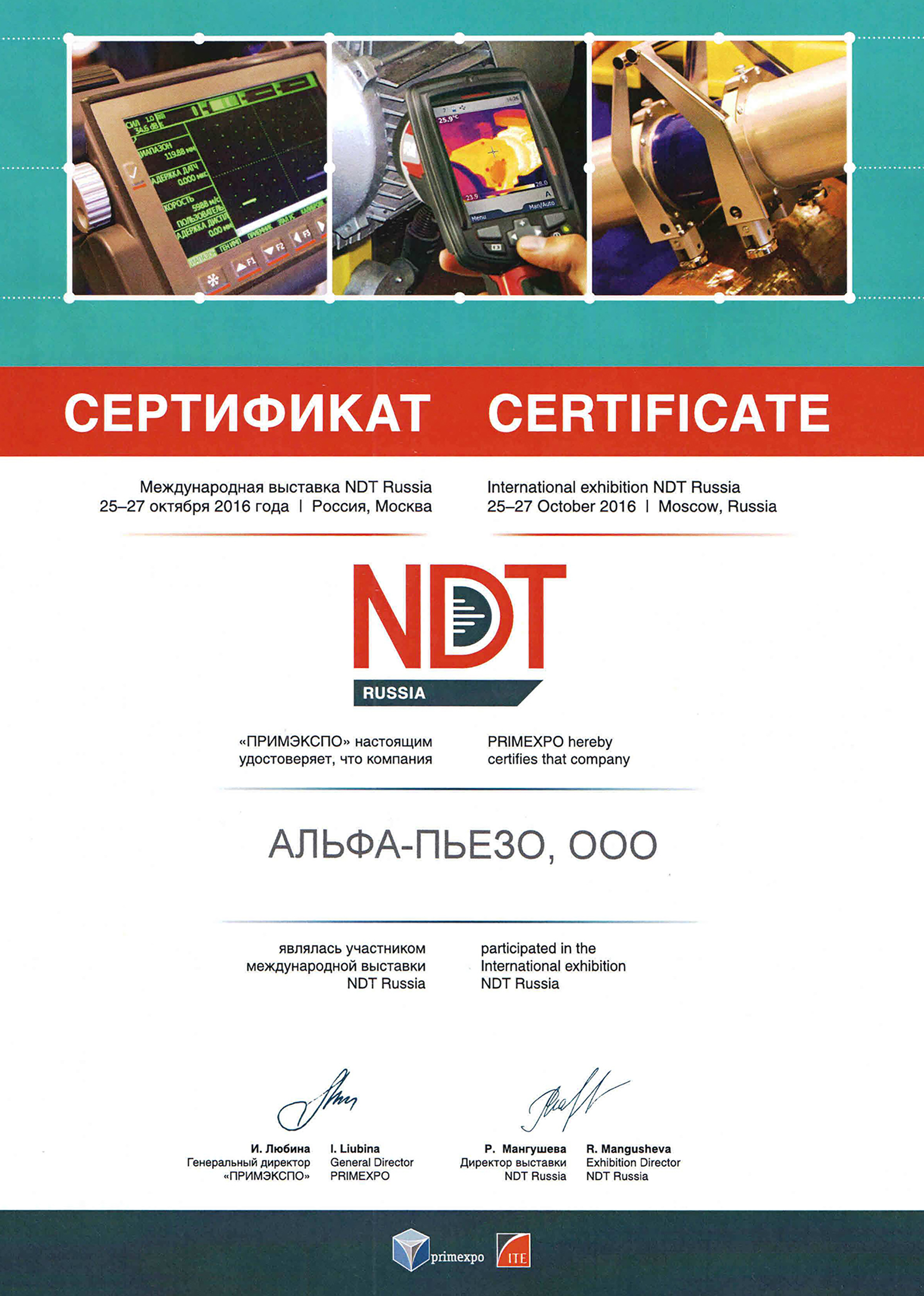 ООО «Альфа - Пьезо» - это коллектив единомышленников-профессионалов. Основное направление нашей компании – разработка акустических искательных систем на основе пьезокерамики и пьезокомпозитов. Мы разрабатываем и производим: ультразвуковые преобразователи для дефектоскопии и толщинометрии серий П111, П112, П121, П131, П211. Выпускаемые ультразвуковые пьезоэлектрические преобразователи работают на предприятиях железнодорожного транспорта, черной и цветной металлургии, химических и авиационных заводах.